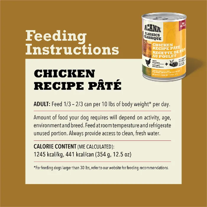Acana Dog Classics Chicken Pate Can 12.5oz 12/cs